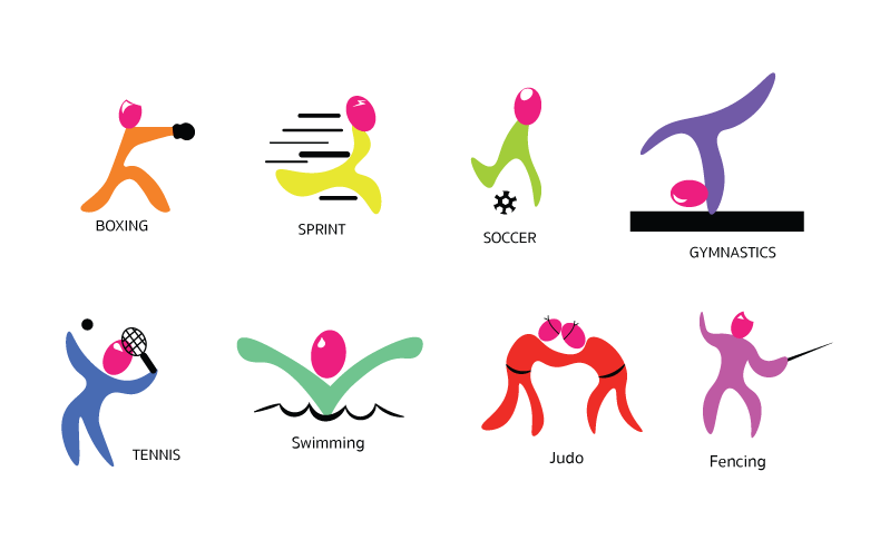 I wanted the icons to show energy and the excitement of being at the Olympic games. My original idea consisted of having the "A" of the logo reenacting the sport's movements. However, I quickly found that I needed more limbs for each icon to be clear.
